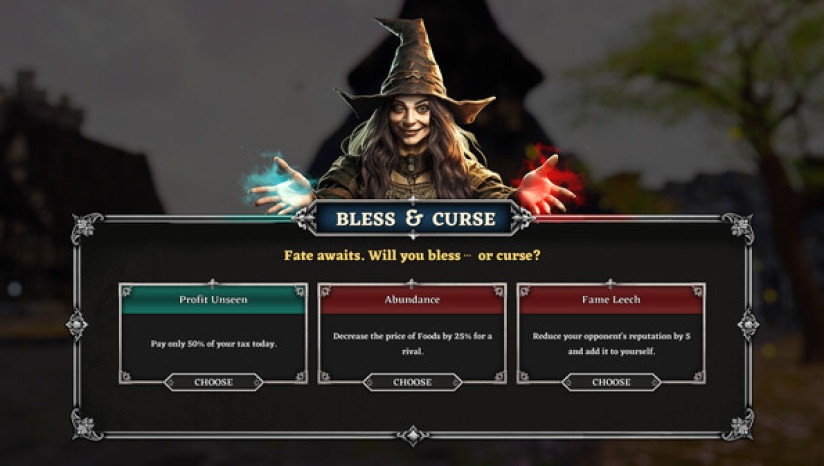 从 3 张神秘女巫卡中选 1 张(祝福或诅咒)