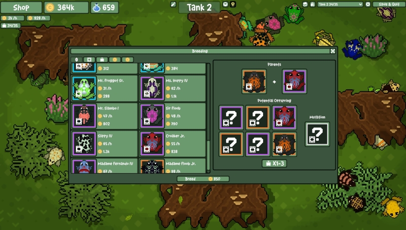 2、通过喂食来养育你的青蛙,然后决定是留下它们还是出售!