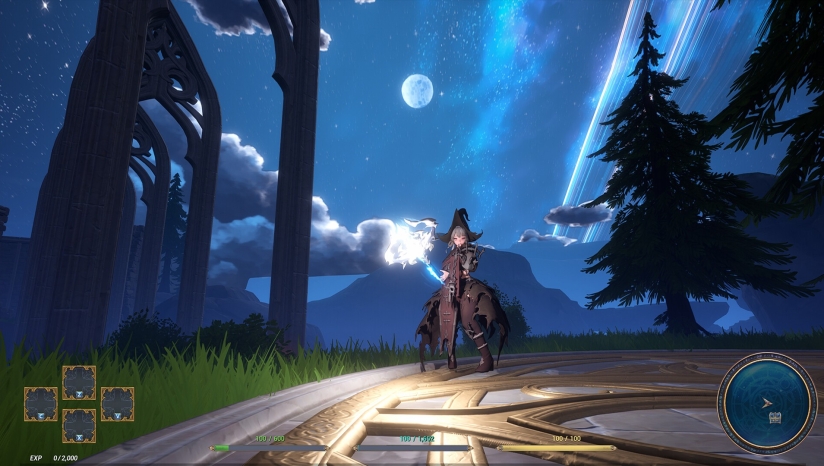 动态光影与植被物理效果增强沉浸感,如魔法技能触发粒子特效、盔甲反光随环境变化。
