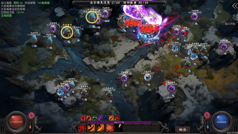 主线以挂机战斗为核心,角色按技能栏顺序自动释放技能。玩家可主动点击触发“魔法炮”辅助攻击(后续可解锁自动模式)。支线地图提供经验、掉宝率等加成,需消耗“幻境石”调整。