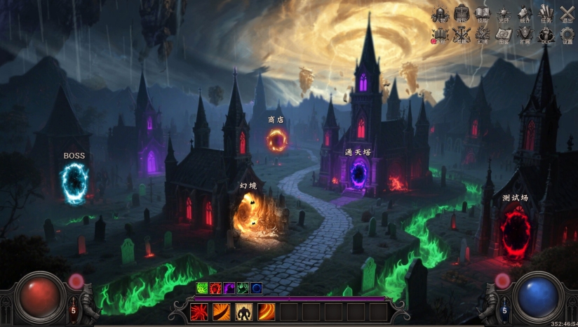 游戏采用偏写实的暗黑奇幻风格,场景塑造强调荒芜与危险感(如狂风沙漠、幽暗峡谷)。但模型精度与界面设计较为朴素,部分UI引导不足,整体呈现“页游画风”。特效侧重技能辨识度(如元素伤害光效),虽缺乏视觉震撼,但符合挂机游戏的轻量化需求。