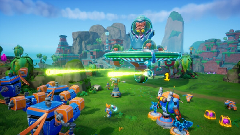 《脑怪来袭!脑晶保卫战(Chip ‘n Clawz vs. The Brainioids)》是由Snapshot Games Inc.开发,Arc Games发行的一款结合了动作与策略元素的游戏,支持简体中文。玩家需要在游戏中收集脑晶,建立基地,并指挥机器人军队击败那些诡异的“瓶装脑怪”外星人。玩家可以亲自操控英雄角色奇普或爪兹冲锋陷阵,或是在合作模式中同时操控两位角色。游戏支持多人联机,玩家可以与好友并肩作战或一较高下,且支持跨平台联机。
