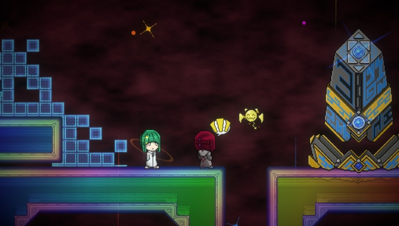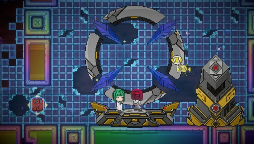 采用精致像素美术风格,场景涵盖实验室、外星森林、机械废墟等多元环境,色调明亮且层次丰富。角色动作流畅,冲刺时与金球合体的粒子特效华丽,搭配动态光影增强视觉冲击力。地图设计被玩家评价为“完美”,兼具视觉美感与关卡功能性。