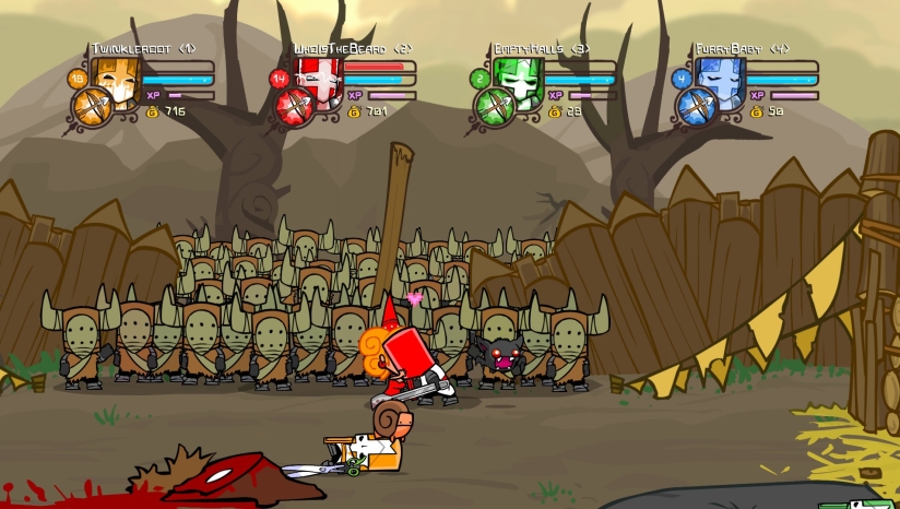 《城堡破坏者》是由独立工作室The Behemoth开发的2D横向卷轴动作冒险游戏。游戏采用鲜明的卡通手绘风格,以60帧高清画质呈现荒诞幽默的中世纪冒险。玩家将扮演骑士,组队对抗偷走魔法水晶并绑架公主的邪恶巫师,在多样化场景中展开闯关之旅。核心玩法融合砍杀与RPG元素,支持1-4人本地或在线合作,可解锁25+特色角色与40+武器,每个角色拥有独特魔法与连招系统,还能通过升级调整力量、魔法等属性。