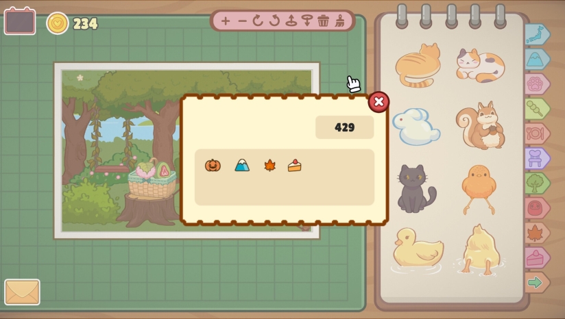 1、1000+贴纸、胶带、涂鸦素材任你挑选!用出售明信片的收入购买更多创作素材吧!随着进度推进,还有近百种邮票、背景、品牌设计等你解锁。
