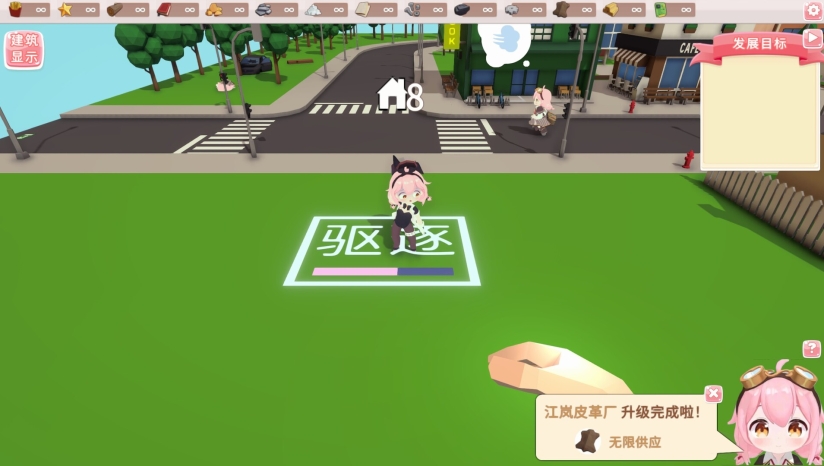 通过分配小菲劳动获取资源,解锁新建筑与科技,推动小镇发展。经营难度适中,无复杂战斗或高强度Boss挑战。