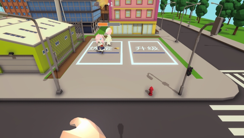 采用低多边形3D卡通渲染,角色建模以圆润线条突出“可爱”特质,配色明亮活泼。