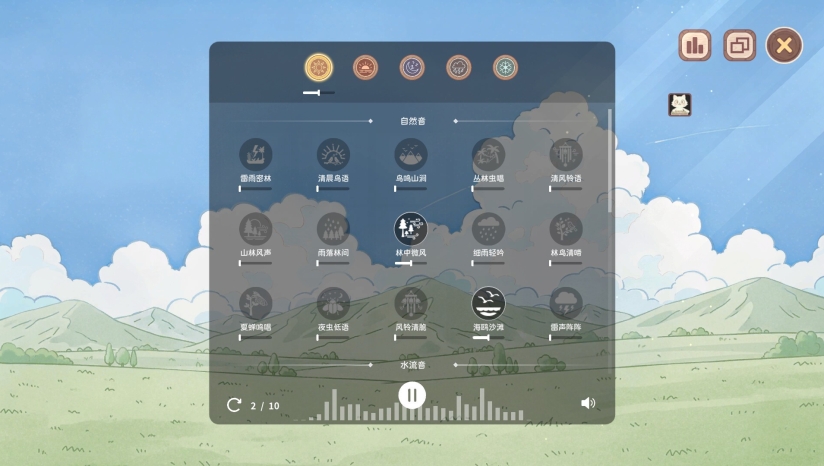 收录了数十首适合专注学习的高品质轻音乐与环境白噪音(如雨声、篝火、森林、键盘声等),边听边被治愈。