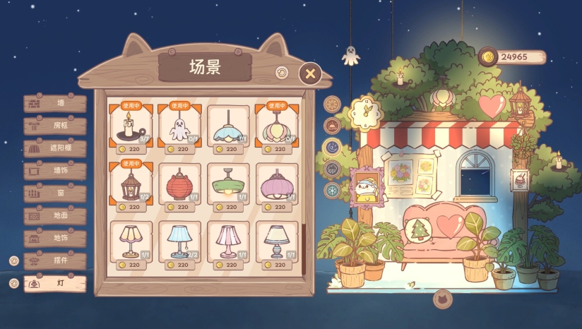 猫屋装饰:墙面、地板、窗户、灯饰、摆件、墙饰、遮阳棚、地面饰品等。