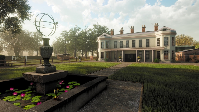 采用精细3D建模还原英国乡村风貌,场景包含昼夜循环与季节植被变化,营造宁静治愈的氛围。