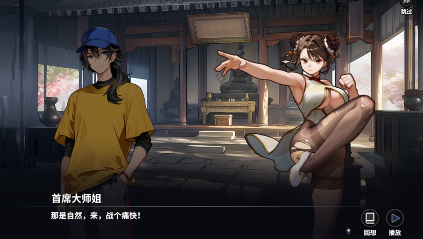 核心采用“肉鸽卡牌+轻量RPG”机制。战斗以街机格斗为灵感,通过方向键(↑↓←→)与拳脚按键(ABCD)组合出招(如“蓄意轰拳”破甲)。每场战斗需动态构建招式卡组,兼顾策略与操作。任务系统包含多线设计:护送同学“雨后小故事”、躲避教师巡查、解谜收集道具等,并融入随机事件与分支剧情。