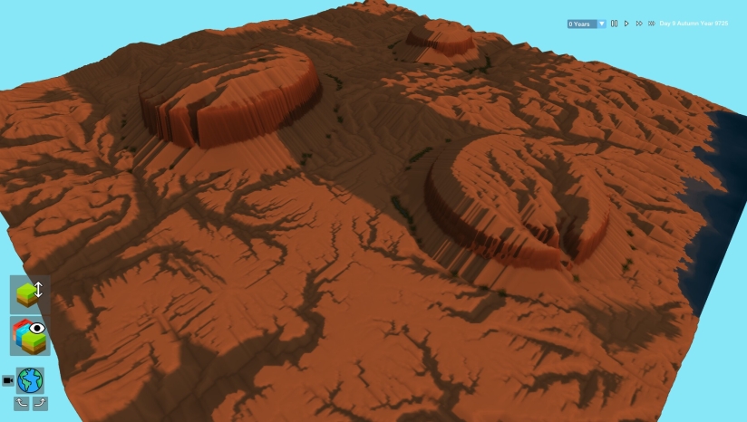 2、玩家可以调整降雨量和温度,创造季节性变化。打造一个热带季风条件的世界,观察草原的繁茂景象;或者降低温度,看着冰川覆盖并侵蚀地貌,当冰川退去时,留下U形山谷和冰川湖。