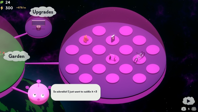 《The Greenening》是Erkberg Games开发制作的一款休闲游戏,预计将在2026年第一季度发行,上线steam平台。一个关于探索和重新唤醒一个被遗忘的世界的短暂而有益健康的增量旅程。洗去灰烬,发现隐藏在下面的秘密,升级你的多功能浇水能力,并培育你自己的舒适太空花园。