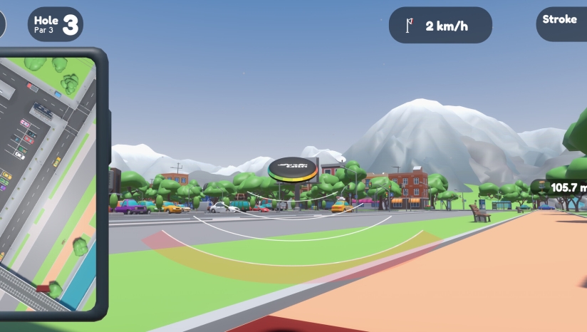 1、街机风格的飞盘高尔夫 设置在熟悉的都市环境中。