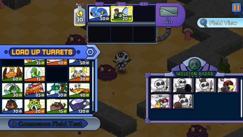 4、防御塔升级:骷髅偶尔会掉落各类药水。用之将炮台强化为不同形态!您会选择寒冰形态、强力变异体,还是暗影潜行武器?
