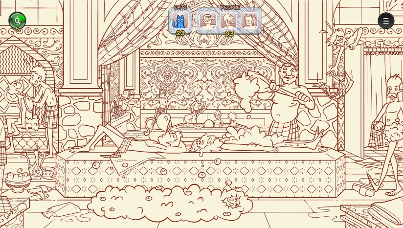 初始场景为黑白线稿,玩家通过点击区域逐步激活色彩,同时搜寻隐藏的猫咪。每只被发现的小猫会转化为专属卡片,收录于图鉴系统。