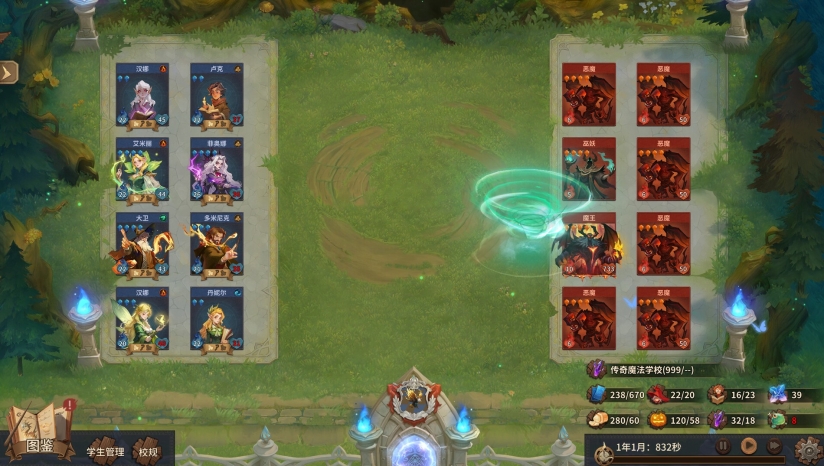 在你建校的过程中,会不断有怪物对你虎视眈眈。要想让自己的学院获得和平与安定,除了派人前去解决它们,也可以给出一些“保护费”,换取更多发展的可能。