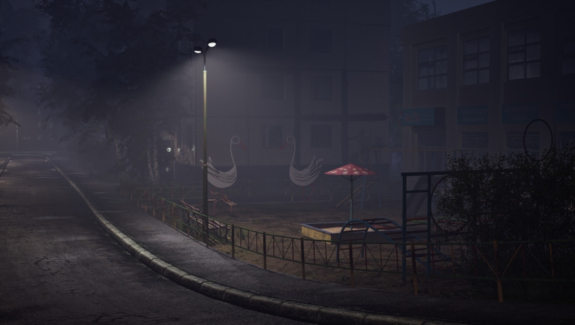 手电筒光束随玩家移动实时投射,照亮飞舞的尘埃与雾气,黑暗中的可视范围成为生存心理的关键要素。