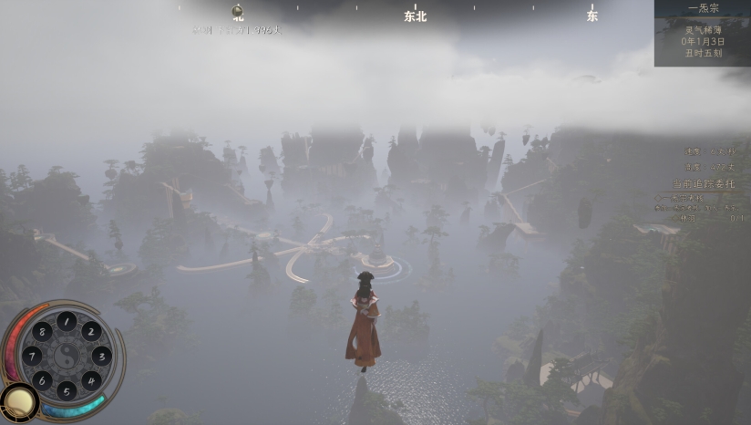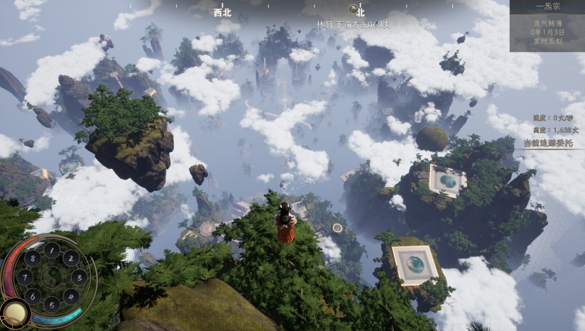 无缝地图支持地表至云层飞行,未探索区域需用神识(M键)定位。