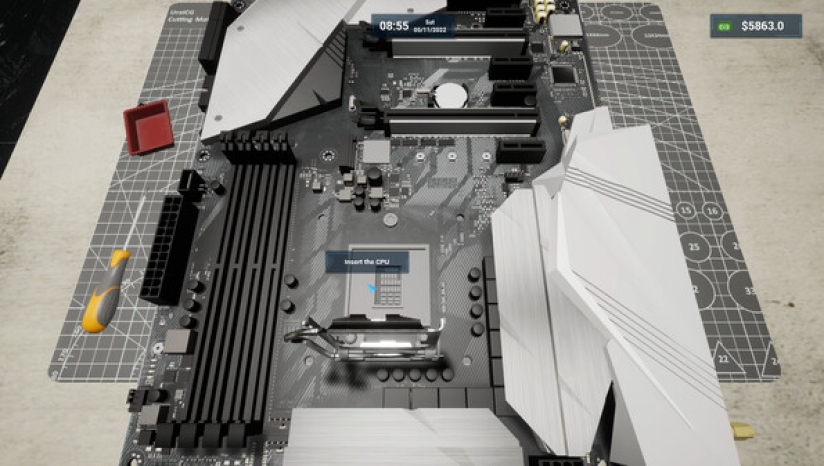 组装计算机组件,例如主板、RAM 和 CPU。