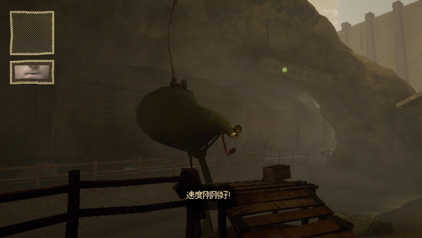 锯齿状山体、锈蚀列车与破败车站组成封闭空间,动态画面模煳与喘息音效直观传递缺氧状态。