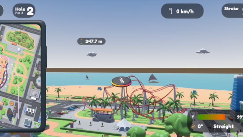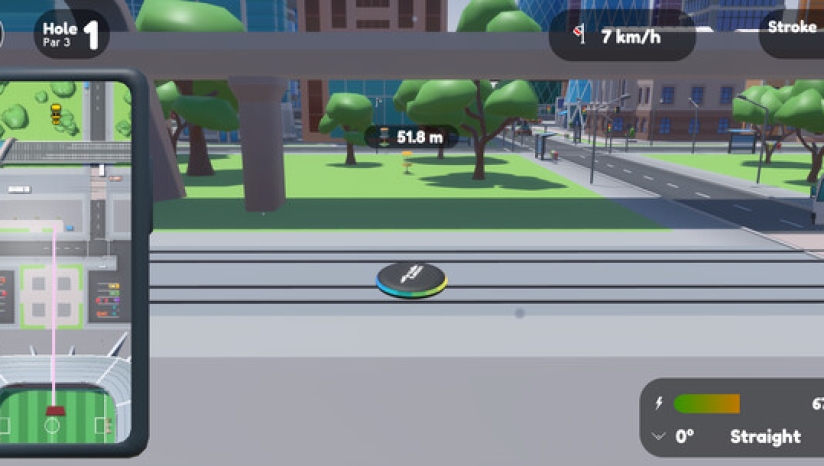 1、街机风格的飞盘高尔夫 设置在熟悉的都市环境中