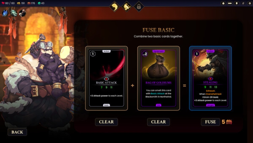 2、删牌不再是你唯一精简卡组的手段!战斗中获得的奖励将化作属于你的资源,用于打造更强大的卡牌——你可以为卡牌镶嵌宝石,赋予其全新的能力;也可以锻造复制品;还可以将法术力卡牌熔炼成更强大的能力,亦或是融合相同卡牌,创造出更高阶的强化版本。享受这份探索组合的惊喜并打造独属于你的完美组合吧!