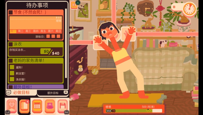 2、饮食系统:通过控制卡路里摄入避免肥胖或营养不良,包含“偷偷喂狗”等幽默机制缓解压力。