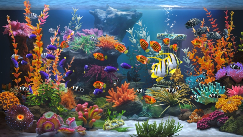 涵盖数十种形态各异的鱼类,每类鱼拥有独特的游动轨迹(如回旋、俯冲、群聚),鳞片反光效果细腻。