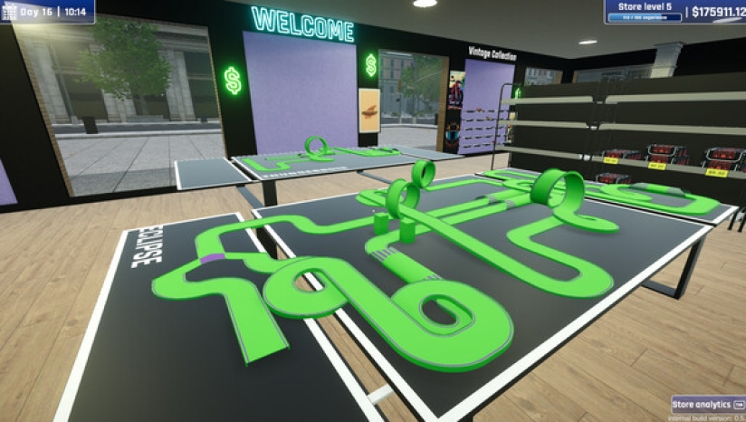 有6条复杂度和难度不断增加的微缩赛道可以放置在你的商店里,它们不仅仅是装饰品。你可以用游戏中可用的每一辆车(每辆车的最高速度、加速度等都不同)在每条赛道上与时间赛跑。尝试获得所有奖杯,但要小心那些疯狂的障碍!