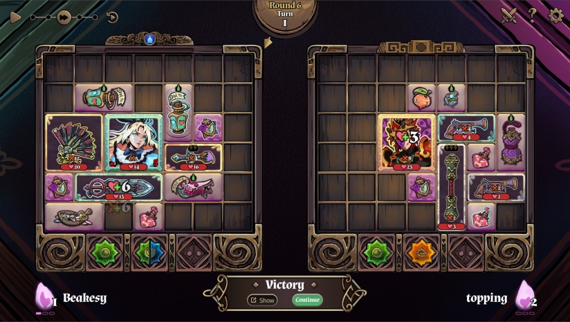 在每一轮对战中,通过选择要购买、升级、部署或出售的方块来管理你的网格型物品栏。布置战术协同效果,执行有利于你的因果循环,让对手始终处于劣势!