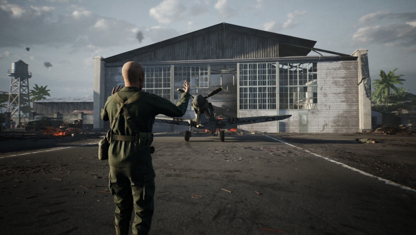 采用写实场景结合漫画风格过场动画,通过硝烟、爆炸特效与伤员嘶吼声营造战场混乱感。尽管画面精度一般(材质较模煳),但燃烧的机场、血色海浪等场景极具视觉冲击力。