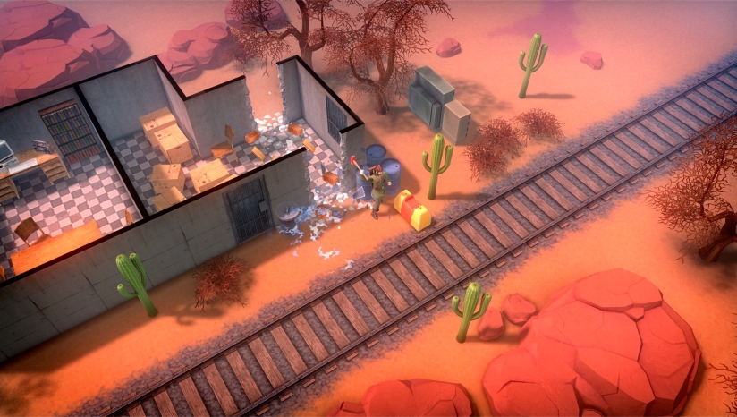 采用低多边形建模搭配细腻光影,植被破坏与天气系统(如暴雨动态)增强沉浸感。俯视角设计便于全局规划。