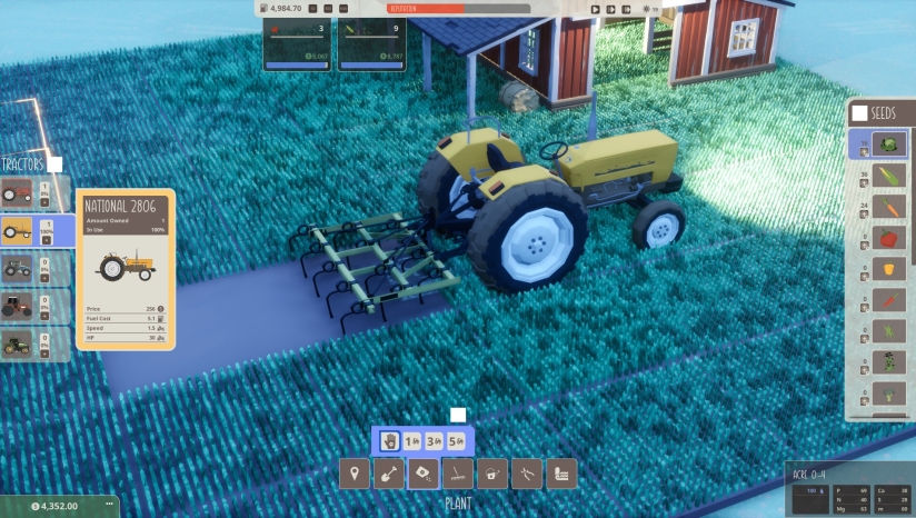 《亩地》(ACRES)设定于一片广阔的乡村环境中,玩家继承了一块贫瘠的土地,目标是通过精心耕作将其发展为繁荣的农场。游戏时间横跨春夏秋冬四季,不同季节会带来独特的作物种植机会与自然挑战(如冬季严寒限制种植),玩家需根据季节变化调整经营策略,应对动态环境。