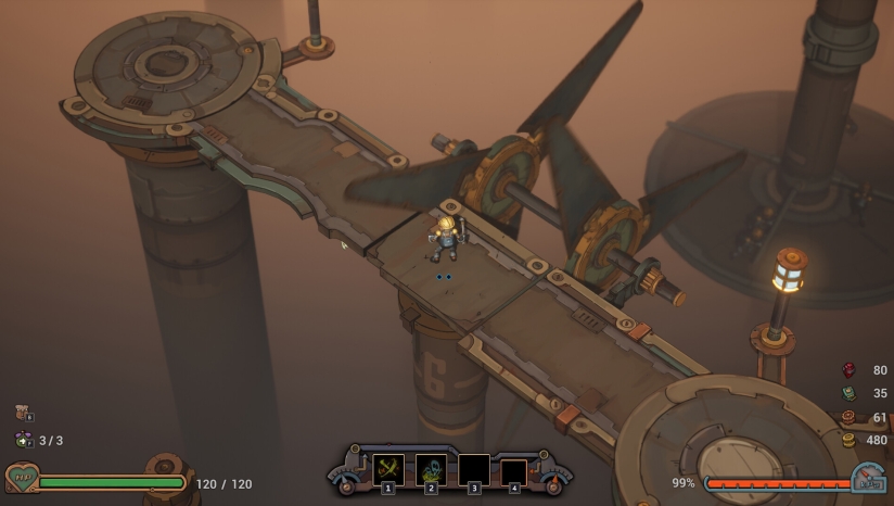 地下的钉刺冷不防弹出,锈迹斑斑的炸弹机器人随时引爆,巨大的钢铁锤从天而降,试图把你砸成废铁。