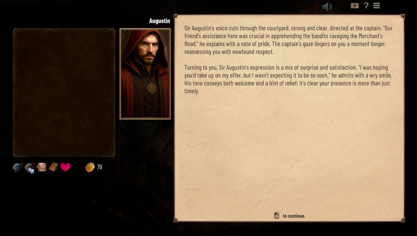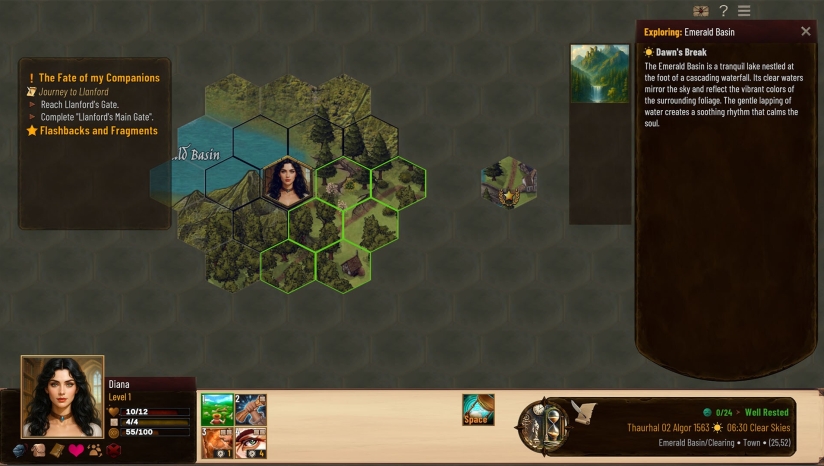 《Erannorth Renaissance》采用文本驱动的叙事风格,注重策略性而非视觉冲击力。游戏界面以简洁的六角格地图和详尽的文字描述为核心,辅以角色状态面板与关系追踪系统。尽管游戏不支持简体中文,但其界面设计注重信息清晰度,例如战斗中的状态效果会以图标结合文字说明呈现,确保玩家能快速掌握战场信息。