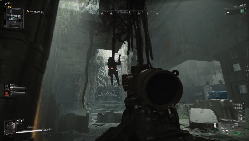 游戏采用三人小队模式,每局最多容纳4支小队(12名玩家)同场竞技。核心玩法分为两个阶段:首先是9分钟的“猎杀发育”阶段,玩家可以在地图中搜索武器、药品和物资,通过击杀怪物或伏击其他玩家来强化自身;随后是“夺宝对决”阶段,幸存者将通过灰境之门被传送到随机的地图空间,争夺价值连城的“灰境核心”。游戏创新性地融合了PvP(玩家对战)和PvE(玩家对环境)元素。玩家不仅需要应对其他小队的威胁,还要警惕环境中各种具有独特机制的怪物,如会突脸偷袭的“抱脸虫”、脱离视野就会靠近的“木乃伊”以及伪装成环境元素的拟态怪物。成功夺取宝物后,玩家可以选择从安全出口撤离,或者通过直升机离开战场。游戏严格控制单局时长在20分钟以内,提供快节奏的紧凑体验。