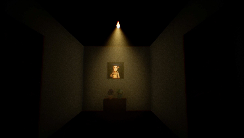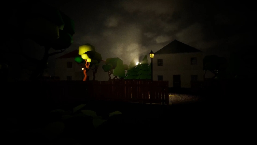 基于Unreal引擎开发,以写实风格构建封闭空间场景。通过光影对比强化环境神秘感,昏暗走廊与忽明忽暗的灯光凸显压抑氛围,配合VHS滤镜的颗粒感与画面抖动,精准传递复古恐怖视觉语言。