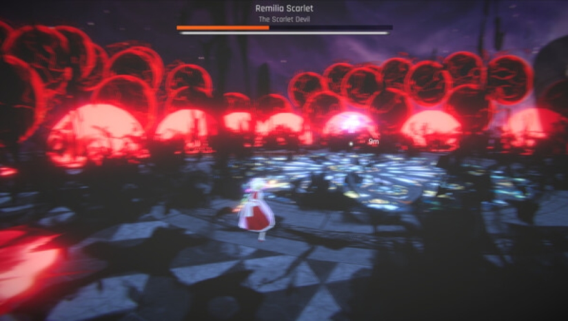 12场以东方角色为原型的BOSS战融合弹幕与动作要素,如「西行寺幽幽子」的樱花陷阱需预判走位,「八云紫」的隙间攻击要求快速反应。破盾后可触发QTE终结技,增加战斗爽快感。