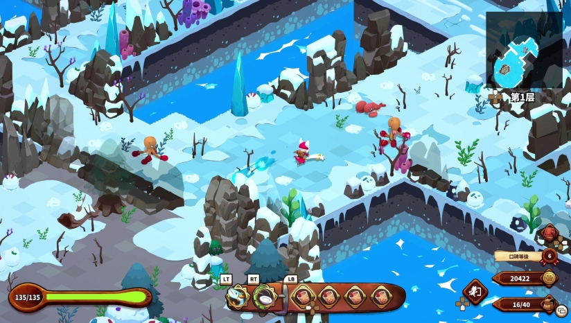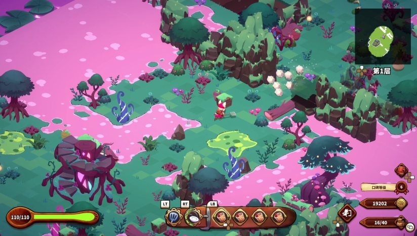 本作巧妙融合了地牢探险与餐厅经营两大核心玩法。在地牢探索方面,游戏采用roguelite风格,玩家将进入随机生成的七大生物群落(如绿野废墟、极寒峡湾、魔晶沼泽等),使用厨具作为武器,与巨型鸡、重炮虾等敌人战斗,收集稀有食材。在经营方面,玩家需要烹饪超过100种来自世界各地的食谱,管理餐厅日常运营,满足顾客需求,偿还债务。游戏还包含丰富的NPC任务链,完成居民请求可以解锁新食谱、武器和剧情内容。