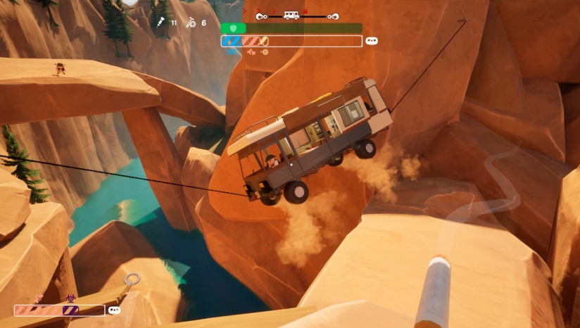 基于物理引擎的互动设计是亮点之一,例如房车在颠簸路段会摇晃、侧滑,甚至因操作不当而损坏,考验玩家的应急能力。