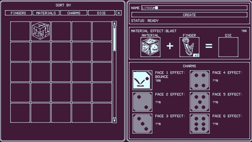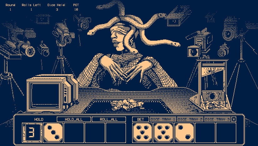 游戏的核心玩法基于骰子对决。玩家每回合拥有五颗骰子和三次投掷机会,通过保留理想骰子、重掷不理想骰子的策略,组成最强牌型。游戏在传统骰子比大小基础上,引入了独创的"附魔系统"——玩家可以使用赢取的断指和特殊材料,为骰子施加各种恶魔封印能力,如改变点数、增加重掷次数或偷取对手骰子。当牌型落后时,玩家还可发动"血誓赌命",献祭一根手指换取额外重掷次数,但失败将承受双倍损失。游戏包含多线程叙事结构和多种结局,玩家的每个决策都会影响故事走向和最终结局。