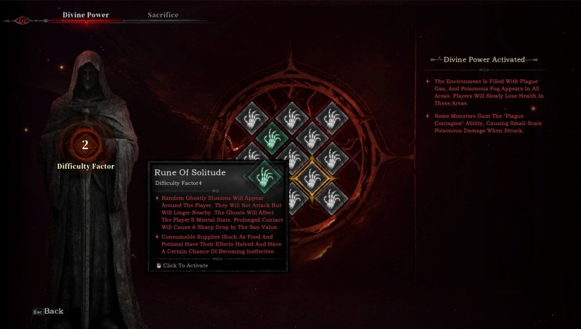 本作的特色在于深度构建系统和丰富的自定义选项。装备系统类似暗黑破坏神,战利品属性随机生成,支持赌博等特殊获取方式,传奇装备丰富。技能系统参考《流放之路》,允许玩家自由镶嵌符文,创造冰火双修、毒伤增幅等独特流派。游戏还融入理智生存机制,将生存压力与战斗紧密结合,并通过动态难度系统确保重复可玩性。