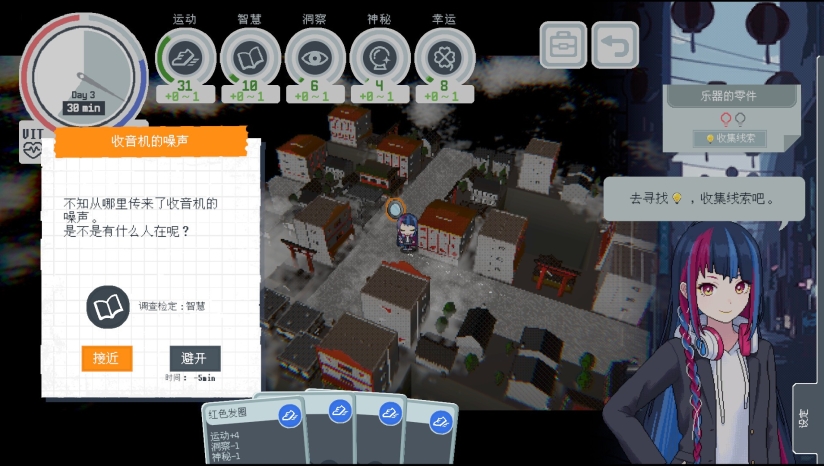 游戏玩法主要分为两大核心模块:故事环节和调查环节。在故事环节中,玩家通过与新闻部成员互动推进剧情发展,深入了解角色背景与世界观。调查环节则要求玩家在神椿市中自由探索,搜集传闻线索、完成委托任务。游戏采用独特的属性判定系统,调查过程中会运用“运动”“智慧”“洞察”“神秘”“幸运”5种参数进行判定。玩家可通过收集城市中散落的道具强化这些参数,并搭配“Park”系统提升道具效果。玩家还需在有限时间内合理规划收集策略,以战略性方式推进调查。此外,游戏还包含新闻发布系统,玩家撰写的报道稿件将影响角色名誉与学园态度。