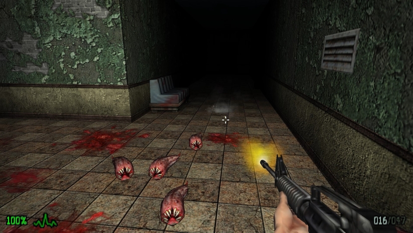 作为一款第一人称射击游戏,本作巧妙融合了解谜、探索与生存恐怖元素。玩家需利用手电筒在黑暗中摸索前进,收集武器、药丸和弹药以应对威胁。游戏包含丰富的解谜环节,如密码锁和钢琴谜题,并充分利用了双屏设计(在原NDS版中),下屏幕用于查看地图、管理物品和切换装备。每次进入新区域游戏会自动保存,但死亡后需从章节起点重新开始,增加了游戏的紧张感和挑战性。