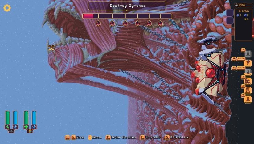 本作最显着的特点是高度自由的自定义系统和程序化生成的矿洞奇观。每次下井都会遭遇独特的矿洞布局、资源分布与怪物巢穴,确保每次探索都充满新鲜感。游戏引入了动态威胁系统和多生态群落差异——怪物会随挖掘深度进化,不同生物群系要求玩家采用不同的装备组合与策略。例如,熔岩层需冷却模块防过热,冰晶区要防滑履带。游戏还设计了独特的异常现象机制,矿脉中随机出现的磁场风暴或菌类共生体等特殊事件,可能临时赋予钻头过热或隐身等颠覆性效果,为探索增加变数。资源管理方面,玩家需要做出战术抉择,有限的背包空间迫使玩家在携带更多修复凝胶保障续航与装载高价值稀有矿物样本之间权衡。