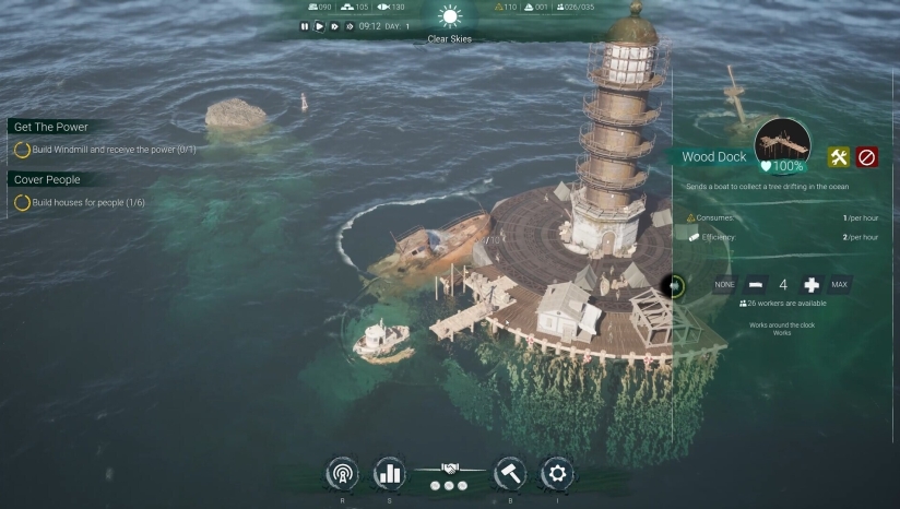 《沉没之光》的特色在于其独特的灯塔机制和动态环境挑战。灯塔的光芒是城市存续的关键,玩家必须时刻维持其运作。所有建筑均漂浮于海面,需应对风暴、海浪等自然灾害,设施具有耐久性设定,需要通过加固或重建来维持功能。游戏强调在资源稀缺下的策略抉择,如何平衡人道主义与生存压力成为核心挑战。