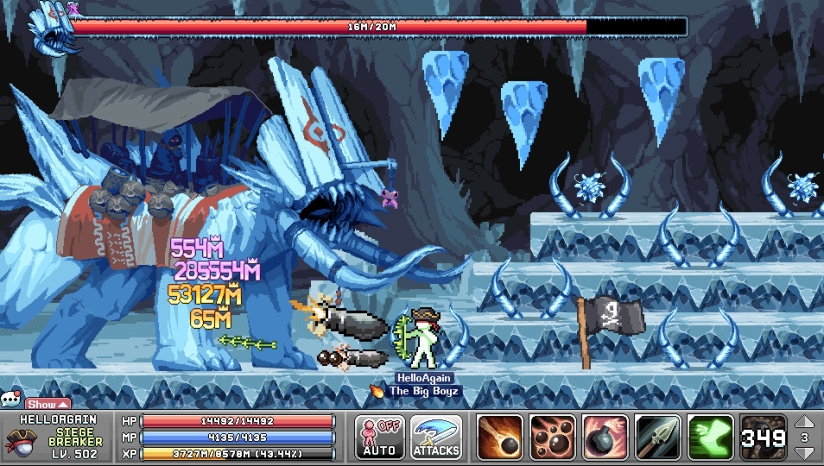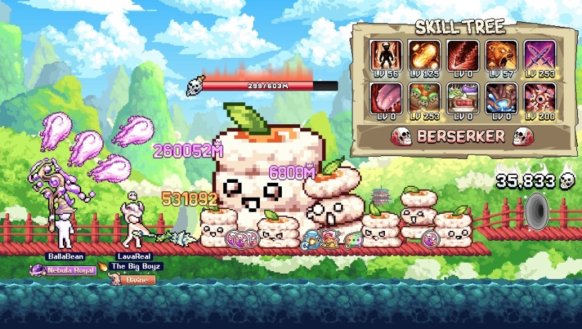 游戏采用精致的像素美术风格,角色与场景设计致敬了经典游戏如《冒险岛》,手绘的动画效果为NPC和怪物注入了生动细节。虽然界面元素简洁,但技能特效、地图交互等动态表现流畅,尤其是战斗时的粒子效果与像素动画结合,增强了视觉反馈。不过,游戏界面信息量较大,新玩家可能需要时间适应。