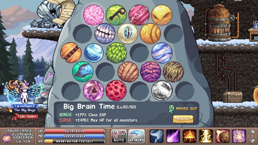 游戏提供250种技能天赋、200余种装备、邮票收集、雕像供奉等复杂系统,支持玩家深度定制角色属性(如提升掉落率、强化挂机收益等)。