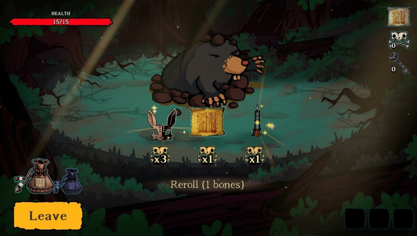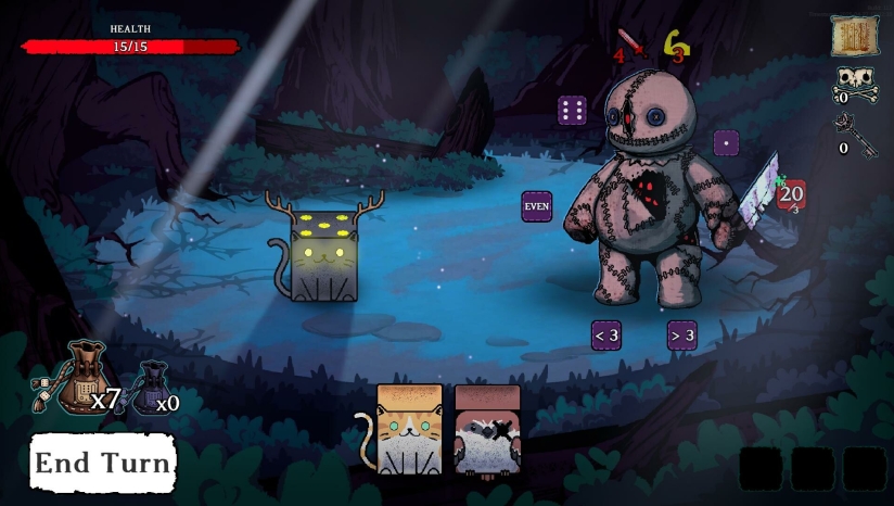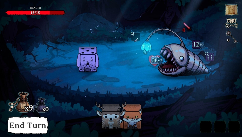 游戏的核心玩法是回合制战斗与卡牌构筑相结合。玩家通过投掷骰子来进行战斗,每次投掷的结果会影响角色的攻击、防御和技能发动。玩家需要策略性地搭配不同动物伙伴的专属技能,组合多样能力来打造强力牌库。在游戏过程中,玩家需要在多个相互连接的关卡中探索,寻找出口。地图设计多样,包括高低起伏的地形和不同楼层,玩家可以通过步行、奔跑、跳跃等方式在迷宫中穿梭。通过打开宝箱,玩家可以获取新的骰子和物品,这些战利品可以用来增强角色能力。玩家还可以通过与商人交易来升级装备,打造独特的骰子组合,解锁更强大的技能。